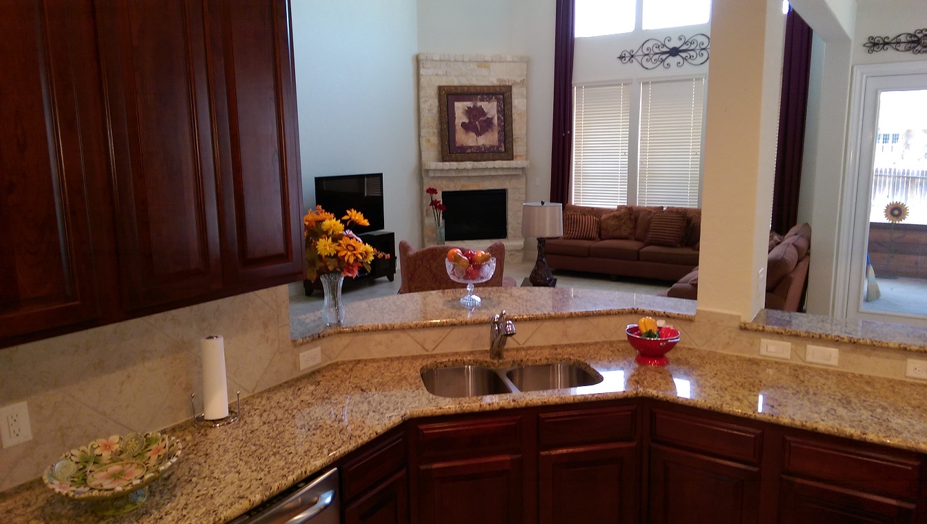 High ceilings Neutral colors throughout Family room Fireplace Island kitchen Breakfast nook Butler pantry Walk in pantry Separate dining room Dual vanities in master bath Separate garden tub and shower in master Dual walkin closets in master bedroom Office/den on first floor Loft overlooks family room Media room Office/study area with marble counter upstairs Ceiling fans Enclosed screened patio/porch Patio slab 2' faux blinds Three car garage with door operner Security system installed Water softener installed All appliances convey with sale All furniture is negotiable Sprinkler system Dual A/C units Fenced oversized yard 4443 square feet +/- Close to Lackland AFB, Medina Annex, Loop 1604, shopping, Northwest Vista College Asking $399,000